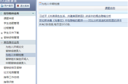 (3)“中期检查表”审查通过后,指导教师在“中期检查表”中给定成绩后提交回系统,予以通过即可。