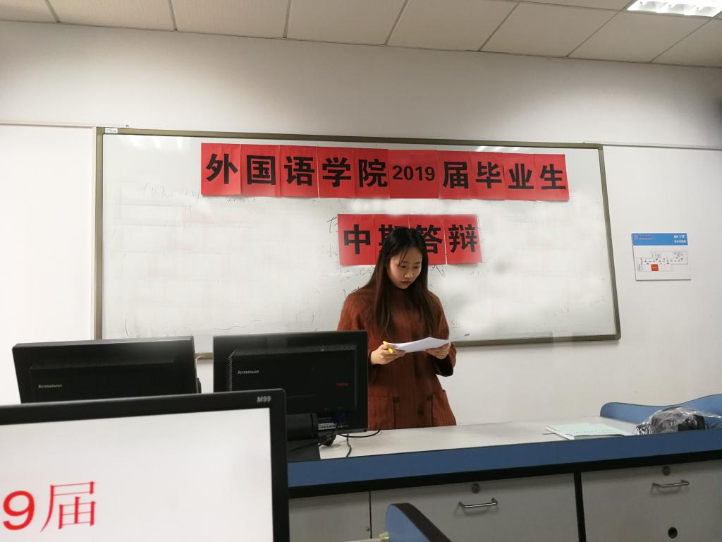 3月28日(周四)下午,太阳成集团tyc122ccvip召开了2019届英语专业毕业论文中期答辩会,对本专业62名毕业生的毕业论文进行了中期检查。