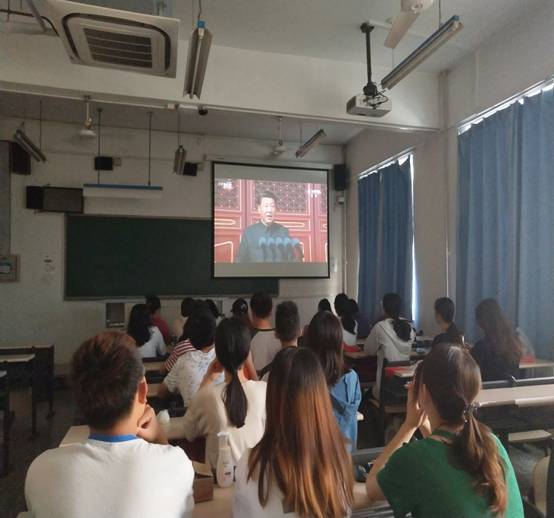 为振奋民族精神,激发青年员工的爱国热情,10月1日上午9点,公司组织员工党员和重点培养对象在5号楼5s21教室,准时观看70周年庆典活动。按照公司要求,2019级新生在校体育馆集体观看庆典活动。
