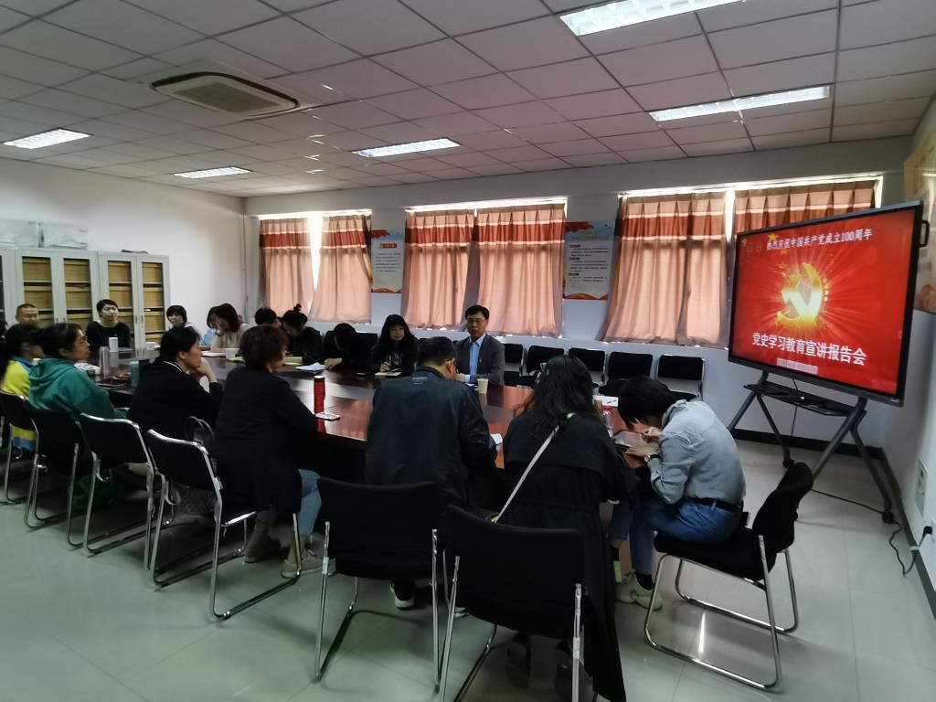 2021年5月6日下午,主持公司党委工作副书记石峰为公司党员、干部做党史学习教育宣讲报告。公司党总支书记王建富主持会议,总支全体党员参加会议。