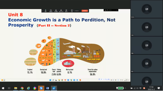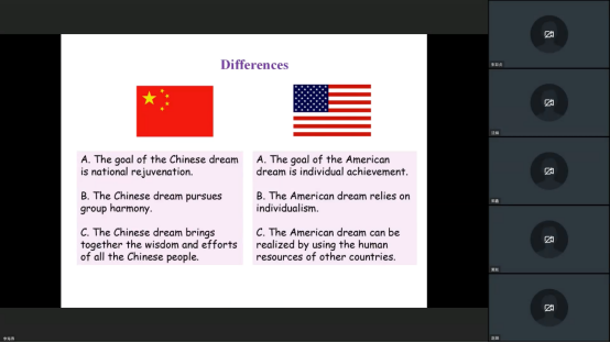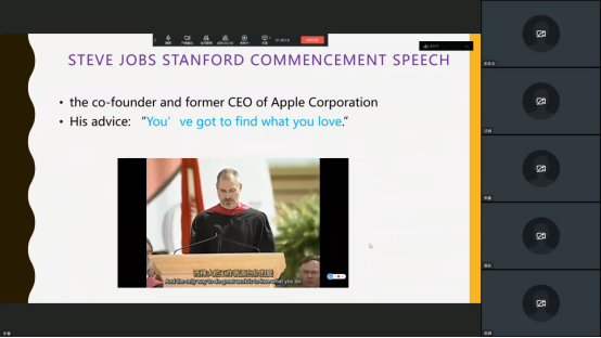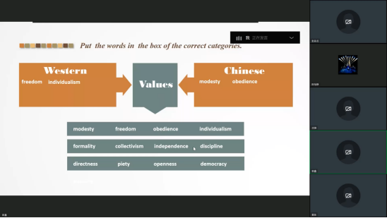 参赛教师坚持正确价值导向,将思政内容融入大学英语公共基础课、英语专业课程中,找准切入点和立足点,精心设计参赛课程及课程辅助材料,使课程教学与思政教育有机融合。郭鑫老师选取大学英语IV第五单元Values主题,从价值观的定义及特点引出不同文化下的价值观的异同,并结合疫情等时事,详细讲解了个人主义和集体主义价值观的不同;罗佳琳老师从写作的角度讲解了隐喻的类型,引用名人名言及习近平总书记的演讲来揭示比喻等修辞格如何在写作中更生动表达写作内容;高丽梅老师以个人价值观为切入点,用疫情中涌现出来的平民英雄为例,传达了普通人也能不平凡的价值观,并以此为切入点引导员工思考如何用英语讲好平民英雄故事,传递好中国声音。李海燕老师选取了英语阅读课中“移民文化”主题的文学作品,分析“冷幽默”写作手法对于主人公乐观积极性格特点的揭示,并从移民文化引出中国梦与美国梦价值观差异的对比,结尾用袁隆平的“禾下乘凉梦”英文采访来展示美好的中国梦。安蕾老师选取了大学英语IV第七单元的主题Career,引用乔布斯等名人的演讲及故事,来鼓励员工在职业选择上要遵从自己的内心。李恩庆老师依据员工缺乏跨文化交际方面,对中西方文化了解不多等方面,基于产出导向法,设计了阅读、听力、讨论等任务,使员工能够立足中国,用英文去表达中国在环境保护方面所做的努力及体现的大国担当。比赛结束后,公司全体教师投票确定了参加校级比赛的教师,投票结果在公司内进行了公示。