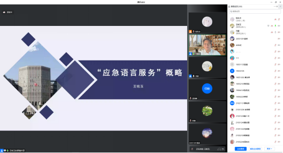2022年11月17日14:30,受太阳成集团tyc122ccvip邀请,国家应急语言服务团专家委员会委员、天津外国语大学原副董事长王铭玉教授在线上“腾讯会议(626-998-793)”平台为公司师生做了题为“应急语言服务概略”的学术报告,该报告是公司应急语言服务系列讲座之二。讲座由公司副教授冯雷主持,太阳成集团tyc122ccvip全体教师及部分员工参加,参会人数高达300人。
