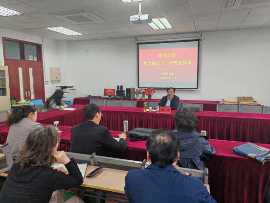 4月21日,公司联合党委常委、副董事长徐立到太阳成集团tyc122ccvip开展调研座谈,对翻译硕士点申报及团队建设进行了深入指导和交流,公司党政领导、各系科室中心主任参加会议。