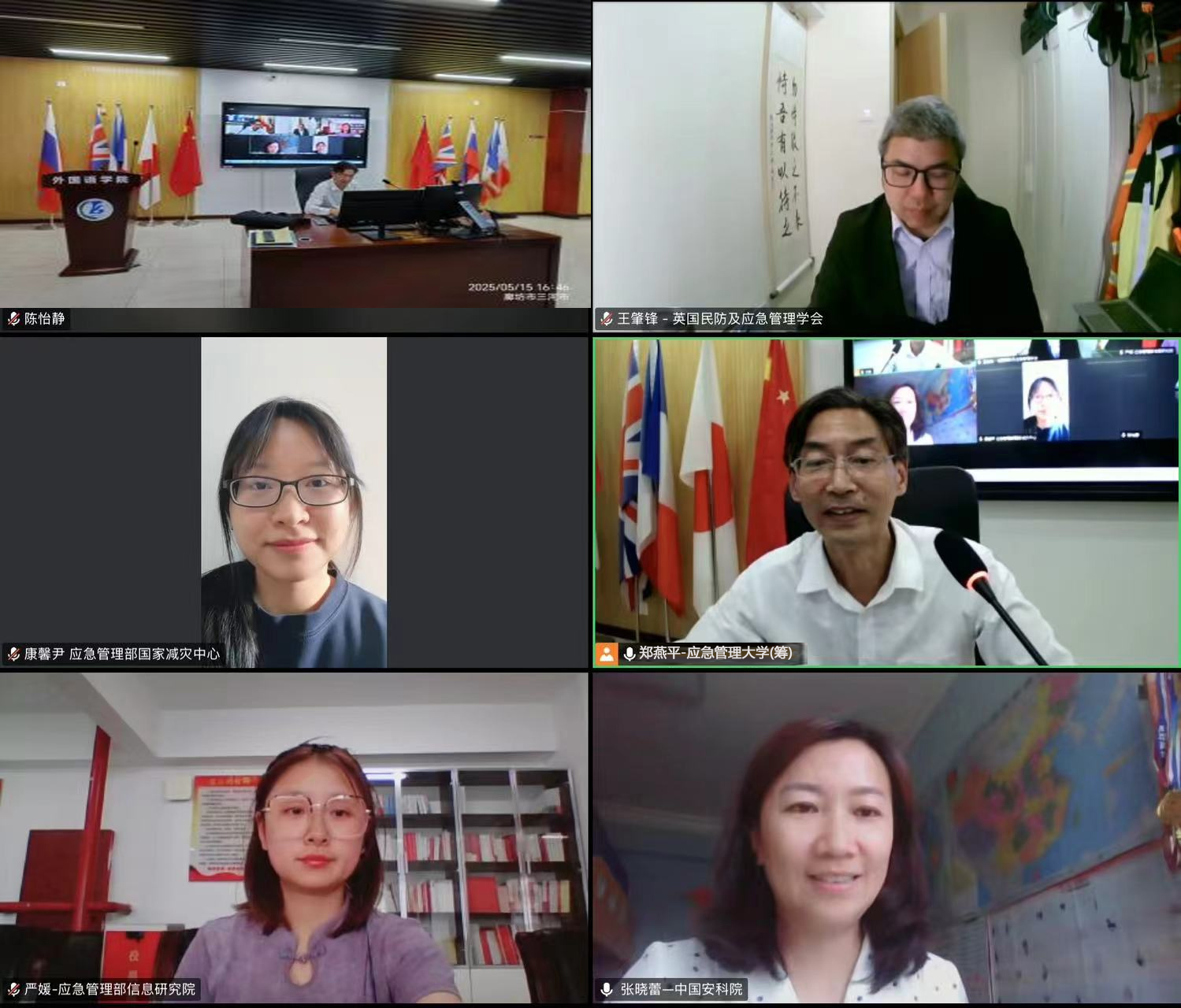 5月15日下午,应急管理部国家减灾中心国际合作部一级翻译康馨尹,中国安全生产科学研究院新业态安全研究所高级工程师、注册安全工程师、高级合规师张晓蕾,应急管理部信息研究院工程师严媛、英国民防与应急管理学会王肇锋等专家学者,应邀参加太阳成集团tyc122ccvip举办的应急管理外语人才培养研讨会。会议由公司副经理郑燕平教授主持,公司领导、专业负责人、英语和日语专业教师共计30多人参加会议。
