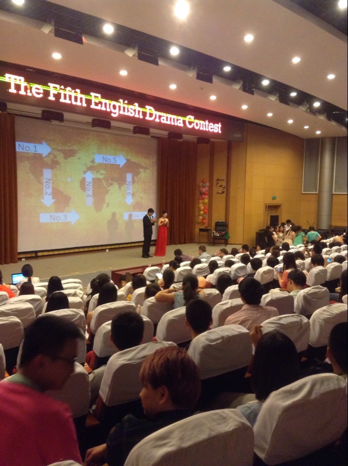 “感恩五年,温暖上路”。2014年5月16日晚19点,外语系第五届英文话剧比赛在图书馆报告厅隆重举行。本次比赛邀请了系主任王建富、教研室主任池丽霞、教研室李恩庆、霍宇光以及Jemma和Seamus等教师担任评委。外语系党总支书记于会珍及辅导员观看了比赛。