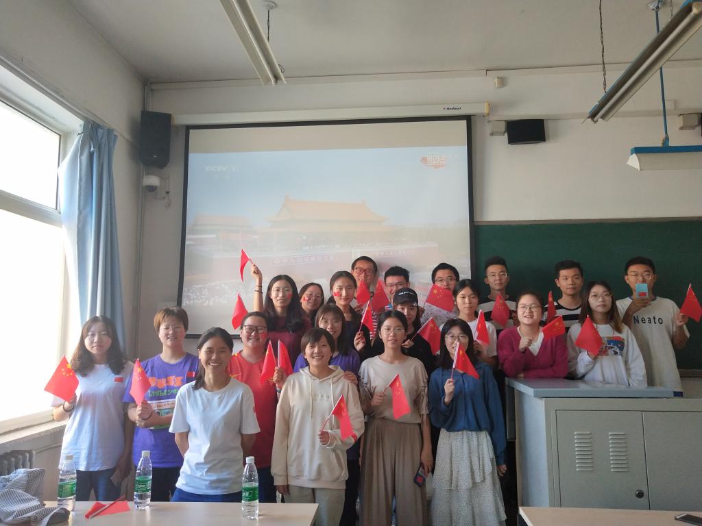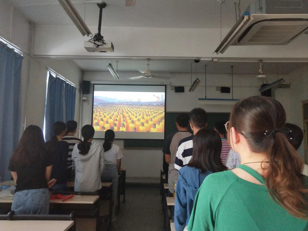 10月1日上午九时,公司学子端坐在教室里,在荧幕前共赏阅兵大典。主持人带领我们追忆旧时光,感慨时代的进步、国家的强盛。记者则向我们深情讲述阅兵礼背后的人文故事。十时许,习近平总书记等国家领导人来到主席台。随后,李克强总理宣布大会开始,在70炮礼炮的齐鸣声中,国旗在国歌的伴奏下缓缓升至顶端。教室里的每个人都不约而同的站起来,挥舞着手中的国旗,将心中的千言万语融入国歌声中。紧接着,在天安门城楼上,习近平总书记面向全国人民发表重要讲话。大家都屏息凝神,全神贯注的聆听着总书记的金玉良言。上午十时二十许,阅兵式正式开始。随后的一个小时里,大家看着一个个威武雄壮的方队从荧幕前走过,心头不禁涌上自豪之情。在大典的尾声,群众游行方阵的出场把大家带入了轻松愉悦的氛围。方阵运用各种形象鲜明的象征物,记录了我国70年来走过的风雨征程。大典结束后,公司学子在图书馆前进行合影留念。