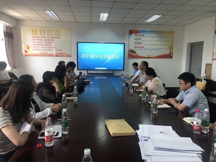 6月10日13:00,公司在会议室召开2021届毕业生代表座谈会。王建富书记、池丽霞经理、韩红梅副经理出席座谈会,英语专业教研室主任、学办主任、毕业班辅导员、教师代表以及40名毕业生代表参加座谈会。座谈会由学办主任王媛主持。