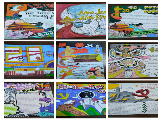 此次手抄报和书法比赛充分展现了优秀学子高水平的英语书写能力和同学们对到来的党的二十大等国家大事的密切关注,反应了当代青年人以天下为己任的担当。全体同学的踊跃参与也使校园里再次掀起一阵英语学习热潮,参赛选手英语水平取得了进步,增强了同学们对英语学习的信心。在简报的最后,也祝愿未来每一届英语文化月能够越办越精彩!