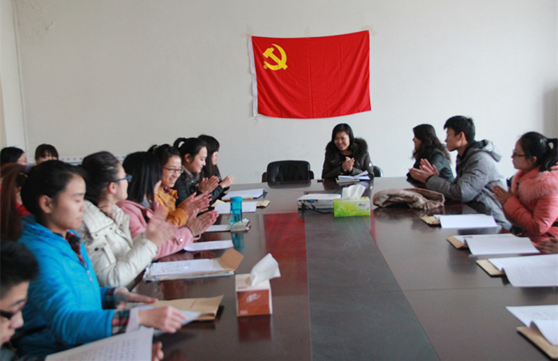 2013年12月10日中午12:30,外语系员工党支部在系会议室召开了员工党员发展及转正大会,参加本次会议的有外语系党总支书记于会珍、员工党支部书记高丽梅、员工正式党员、预备党员、以及申请入党的重点培养员工,员工党支部书记高丽梅老师主持了此次会议。