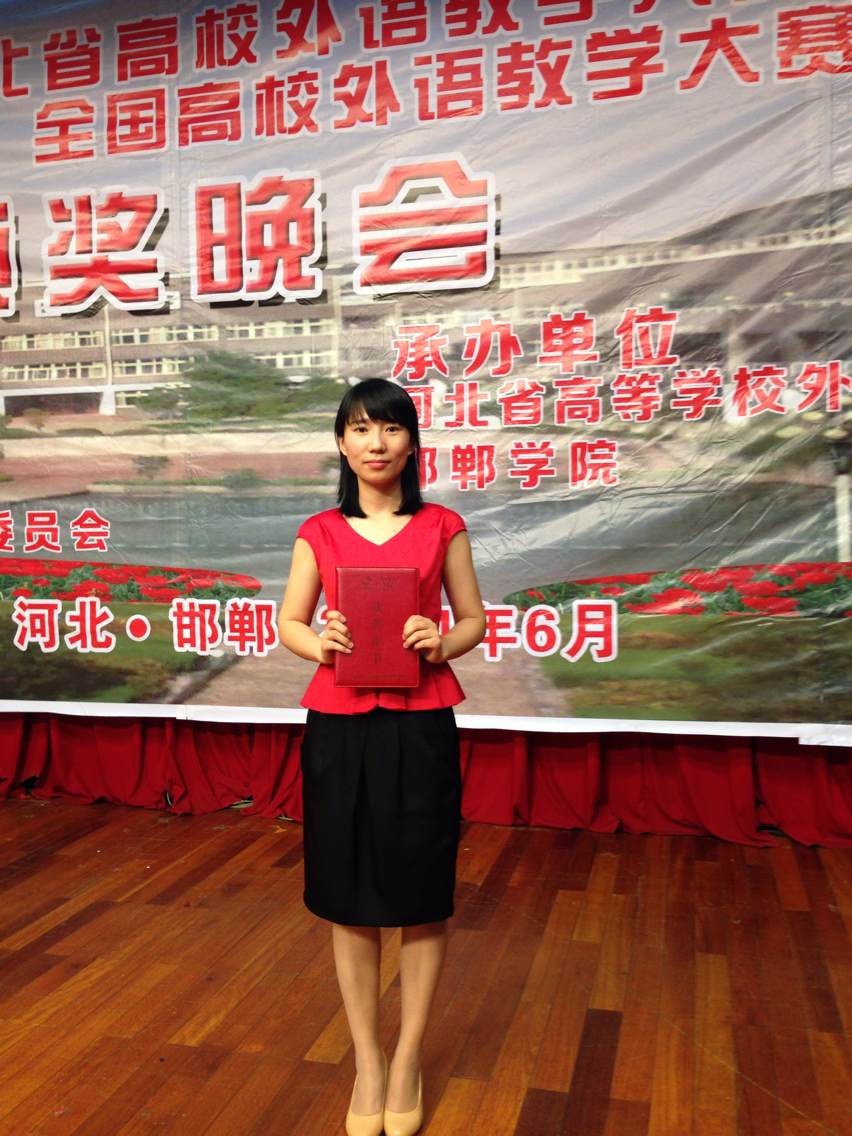 我系教师王菁在第五届“外教社杯”全国高校外语教学大赛河北赛区决赛中获得专业组特等奖,同时我系教师刘娲路获大学英语组三等奖。